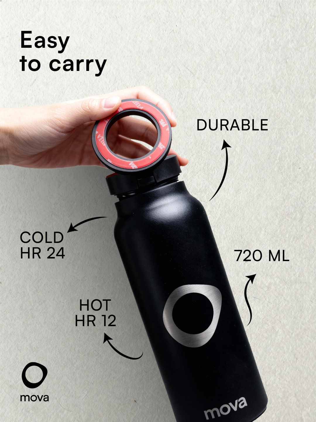 Snap your phone onto the bottle for hands-free use anywhere - Double-wall vacuum insulation